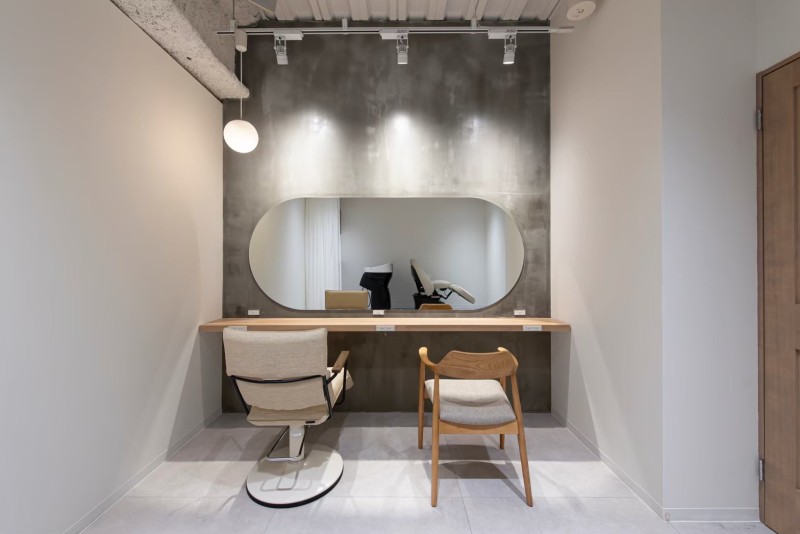 シャンプー台・セット面が完備されており、1室の中で施術から仕上げまで完結可能。