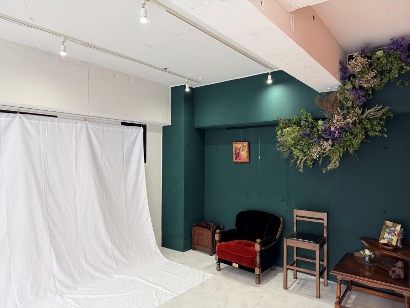 ※当スタジオでの一部花柄の壁紙での撮影は商用利用不可となっております。ご了承ください。