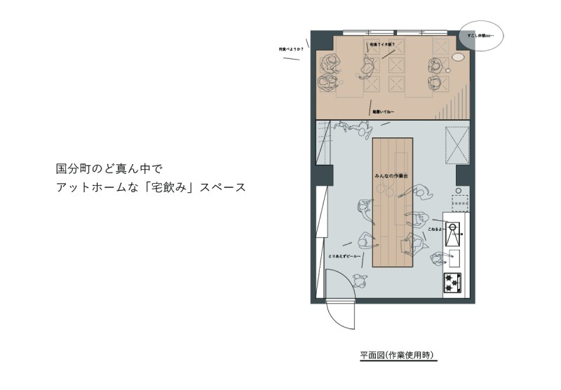仙台市中心部、国分町にあるシェアキッチン(11.7坪)です。各種パーティー、ミーティングやワークショップ、コワーキングにもご利用頂けます。Free WiFi、音響機器設置済みです。調理器具もご利用頂けます。 このスペースは、SRM(せんだいリノベーションまちづくり)の遊休不動産活用プロジェクトにより作られ、まちの活性化に貢献しています。また、このプロジェクトは、補助金を使わず民間主導で実施されています。 事前の見学が可能ですが、見学時間は、平日の10時〜17時とさせて頂きます。