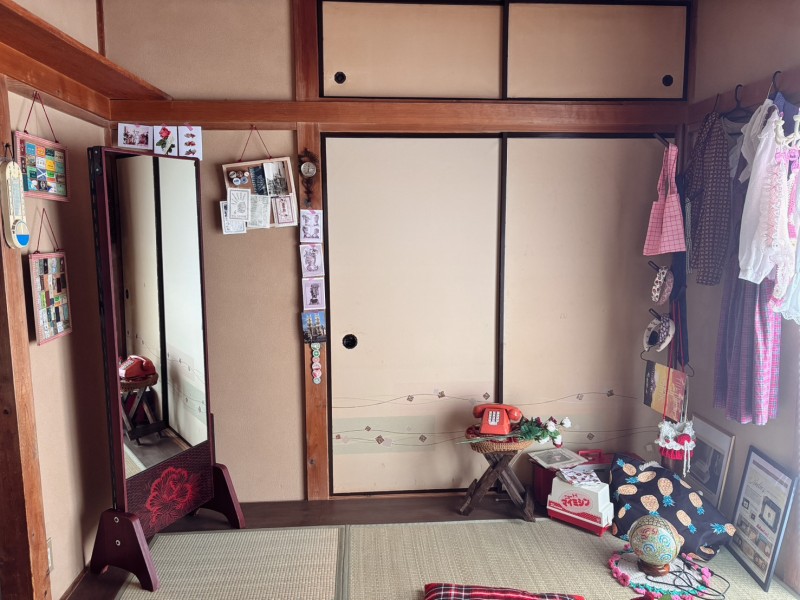 当時の家電を残したダイニングキッチンでは、シーンに合わせて様々な雰囲気の撮影が可能。一角にはピンク電話を使った「ピンク×レトロ」のプチブースもあり、ガーリーな写真も楽しめます。