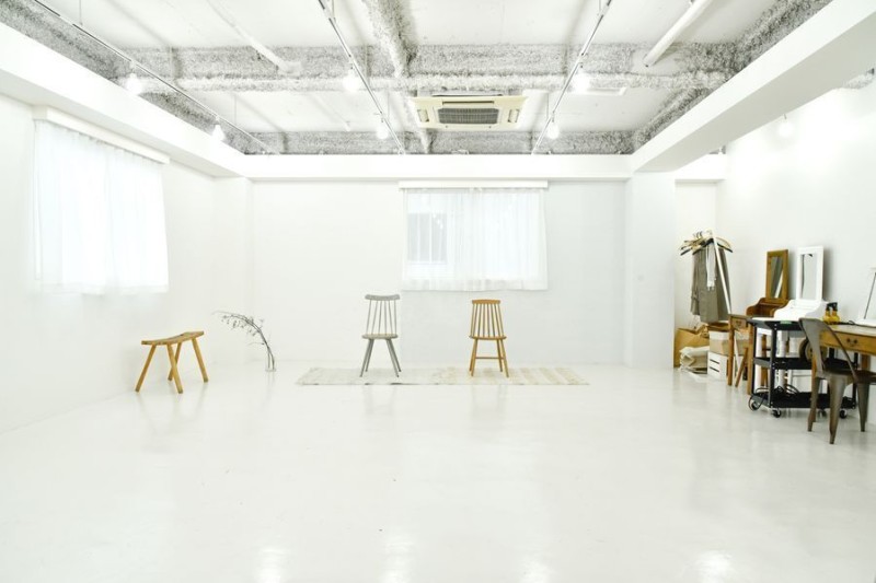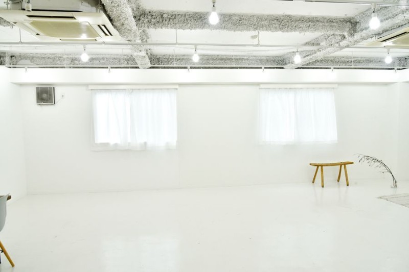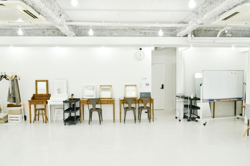 白を基調とした明るい空間は、美容室の撮影や物撮り、ファッション撮影など、幅広い用途に対応可能です。
