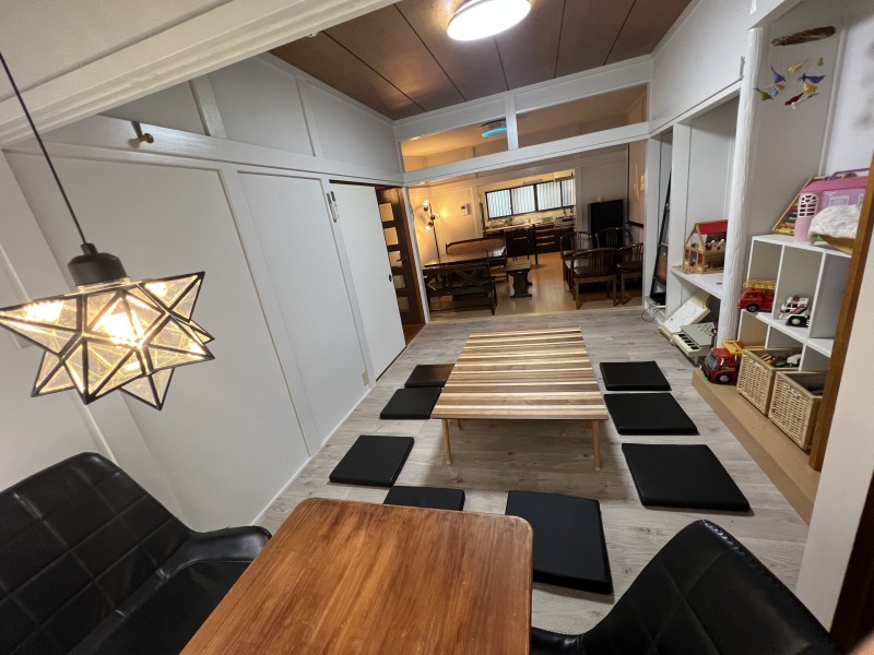 おもちゃと絵本を常設。小さなお子さま連れでも過ごしやすい環境です。ママ会・パパ会など少人数の集まりにも最適です。